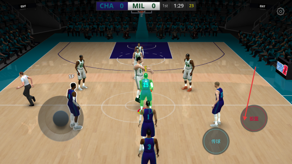 4、成功拿到球后,根据场上局势,点击传球按钮将球传给队友,或点击其他进攻按钮进行投篮、突破等操作,努力赢得比赛胜利。