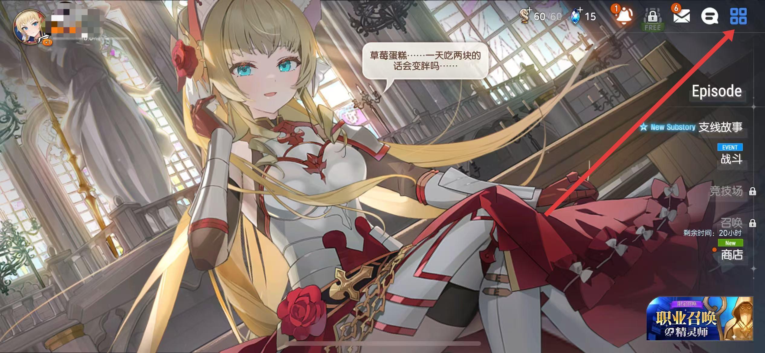1、打开第七史诗游戏,进入游戏主界面,点击右上角的图标。