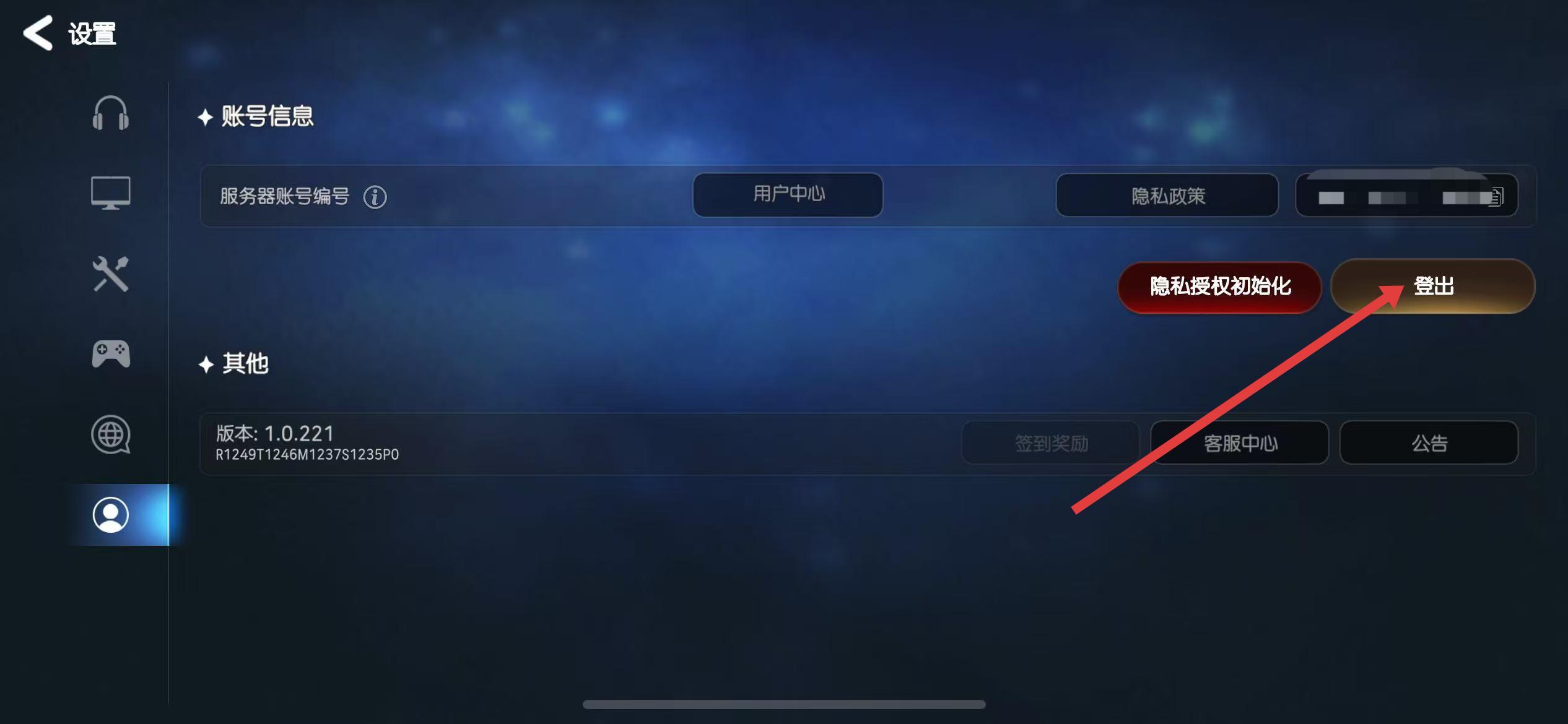 3、进入设置页面,找到并点击登出按钮,回到登录页面。