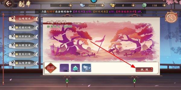 2、玩家可以在副本界面选择对应的挑战关卡,消耗道具后点击挑战按钮,进入副本开启战斗挑战。