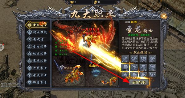 2、进入游戏,选择圣龙骑士等职业前往转职,解锁职业技能,提升战力。