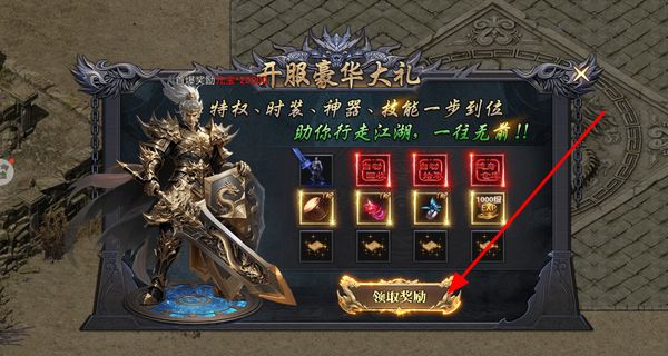 4、领取开服豪华大礼等奖励,获取特权和道具,增强角色能力,体验养成玩法。