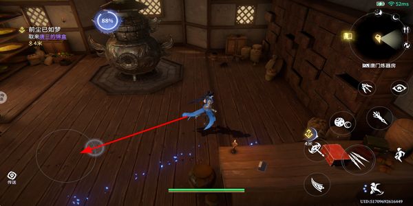 3、长按移动操作控制角色在场景内行动,前往目标位置,推进任务流程,靠近需要交互的物品。