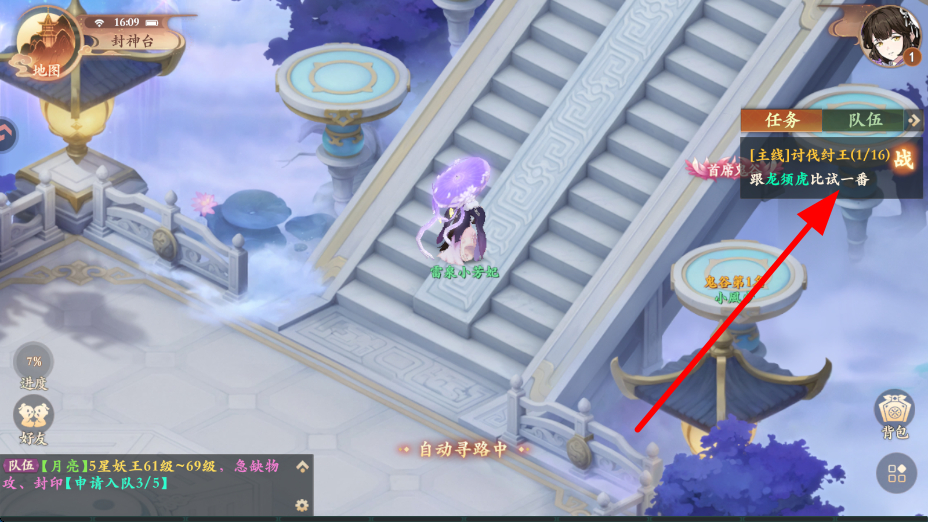 2、进入游戏后,右侧会有任务列表,根据任务指引,前往指定地点完成任务,推进剧情发展,获取任务相关的奖励。