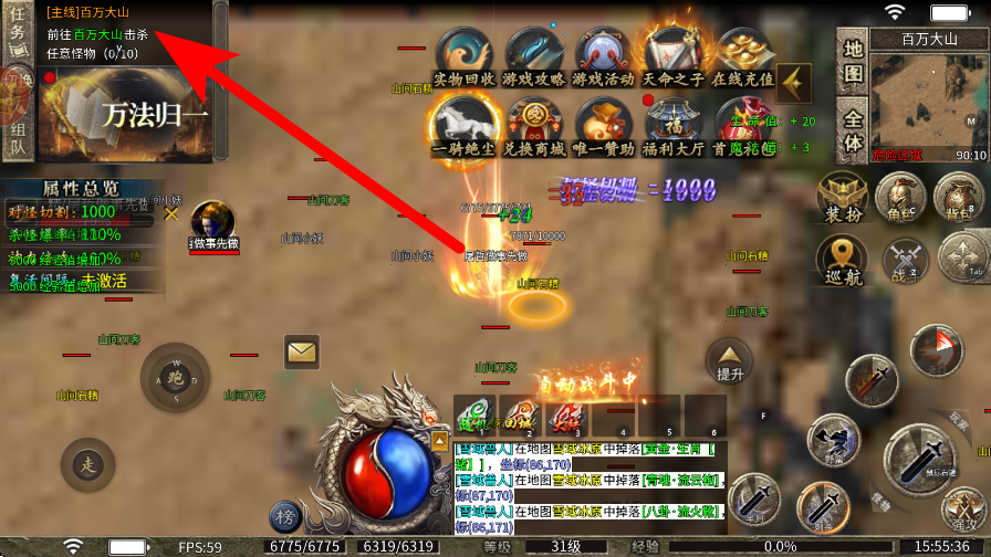 3、接着领取任务,在任务的界面,可以领取诸如前往百万大山等任务,了解任务目标,为后续传说地图杀怪完成任务做好准备。