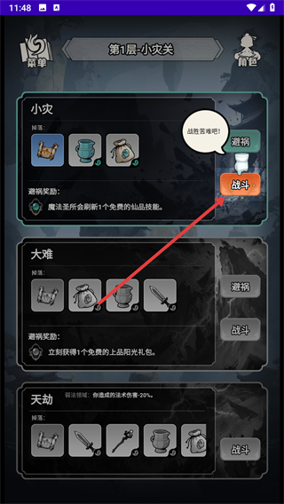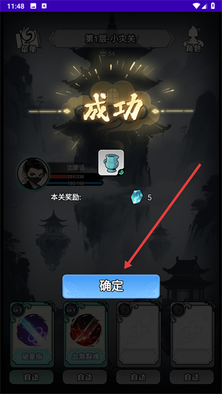 4、用学习的修术和炼器装备,击败敌人之后即可获得关卡奖励。