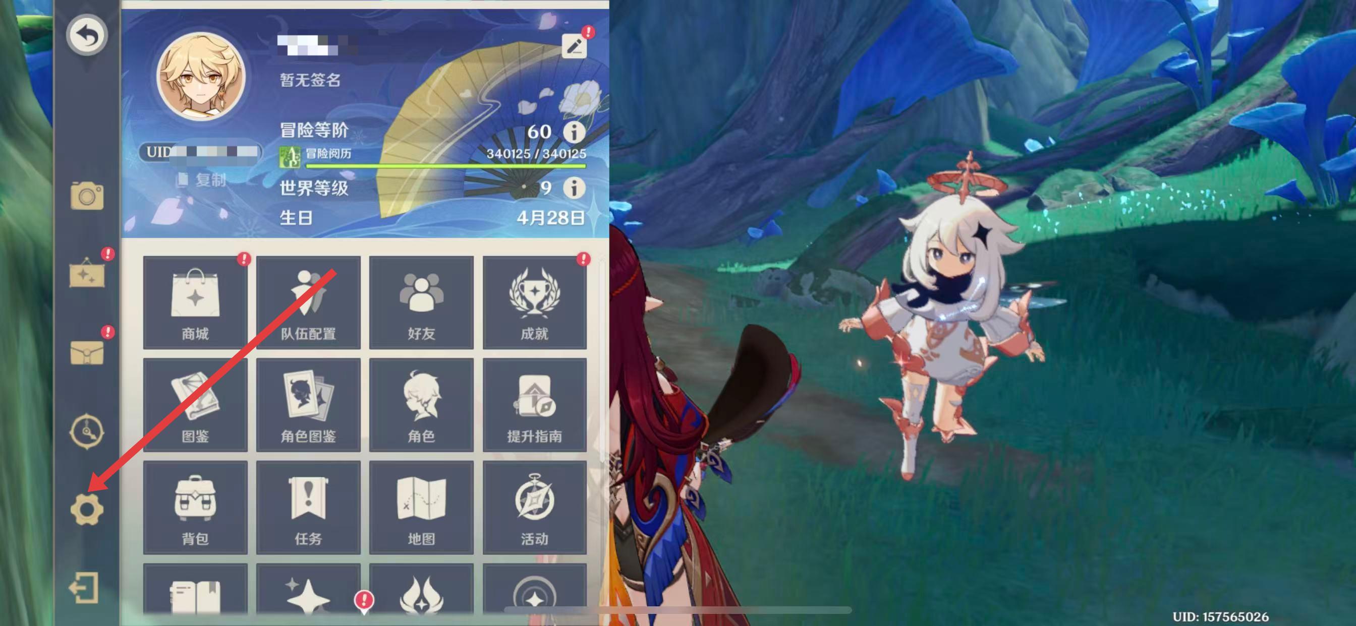 1、点击游戏界面左上角派蒙头像,打开游戏菜单。