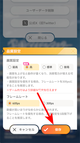 3、在画质设定区域,可选择画质选项,同时可调整フレームレート(帧率)。