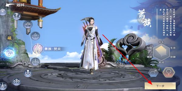 1、选择萧族等职业并确定形象,点击下一步按钮完成角色创建,开启在斗破世界的修行旅程。
