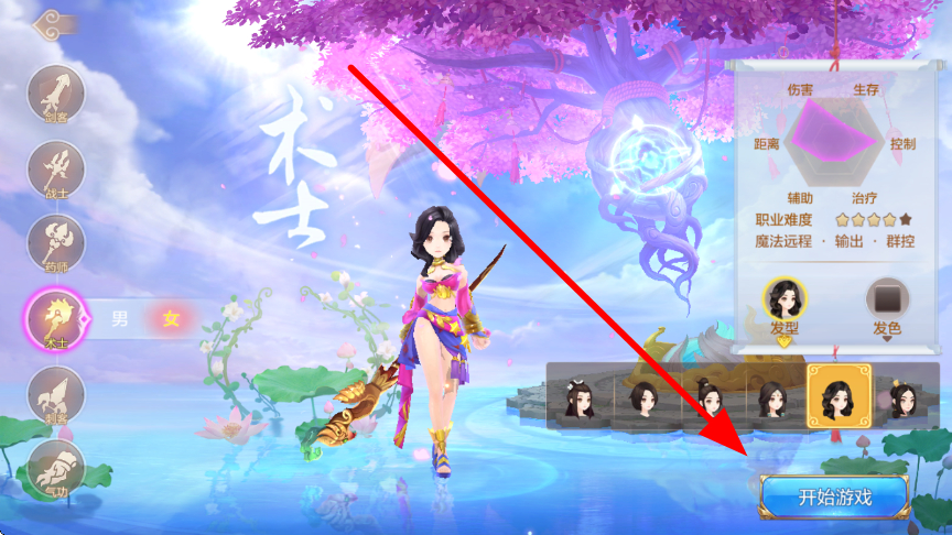 1、玩家开局选择创建不同职业,像术士这类魔法远程、擅长输出与群控的职业,选好职业并设置好角色形象后,点击开始游戏,开启幻想冒险之旅。