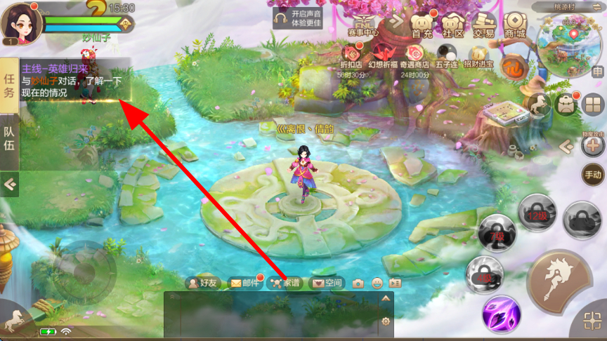 3、会有主线任务指引,如与妙仙子对话等任务,跟随任务提示,推进主线任务进程,在完成任务过程中了解幻想世界的故事,提升角色实力。