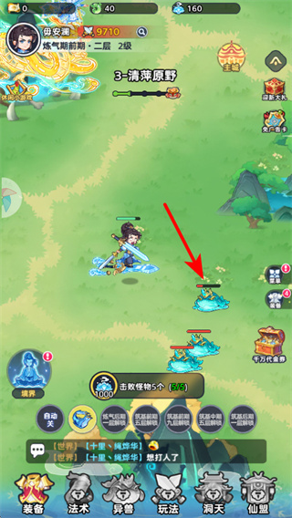 2、战斗点击游历按钮,可触发自动战斗击败敌人,这是高效推进关卡、积累击杀数核心方式。