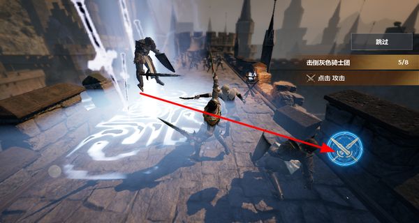 2、滑动摇杆移动,攻击指定敌人如灰色骑士团,战斗中注意观察剩余目标数量,逐步完成击杀任务。