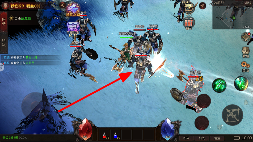 4、战斗场景中,操控角色与魔物如蓝魔怪等战斗,运用技能攻击敌人,击败魔物可推进任务进程,同时收获战斗相关奖励。