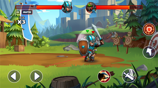1、操控角斗士战斗,触发连击X3效果,使用技能攻击敌方单位,推进对战。