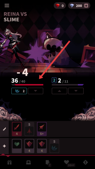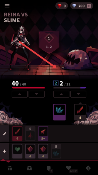 1、进入对战页面,优先出高伤害卡如红色剑卡4,快速压低史莱姆血量,连击攻击,别留低费卡。
