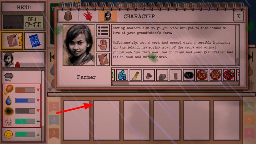 1、进入游戏后查看初始卡牌,了解每张卡牌的功能与使用条件,通过点击卡牌组合完成基础生存动作如收集椰子。