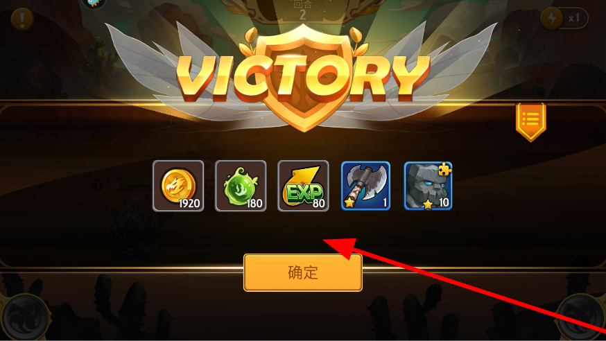 4、战斗胜利后,会显示结算界面,能获取金币、道具等奖励,点击确定,领取奖励,结束此次战斗,可继续进行下一次召唤或战斗。