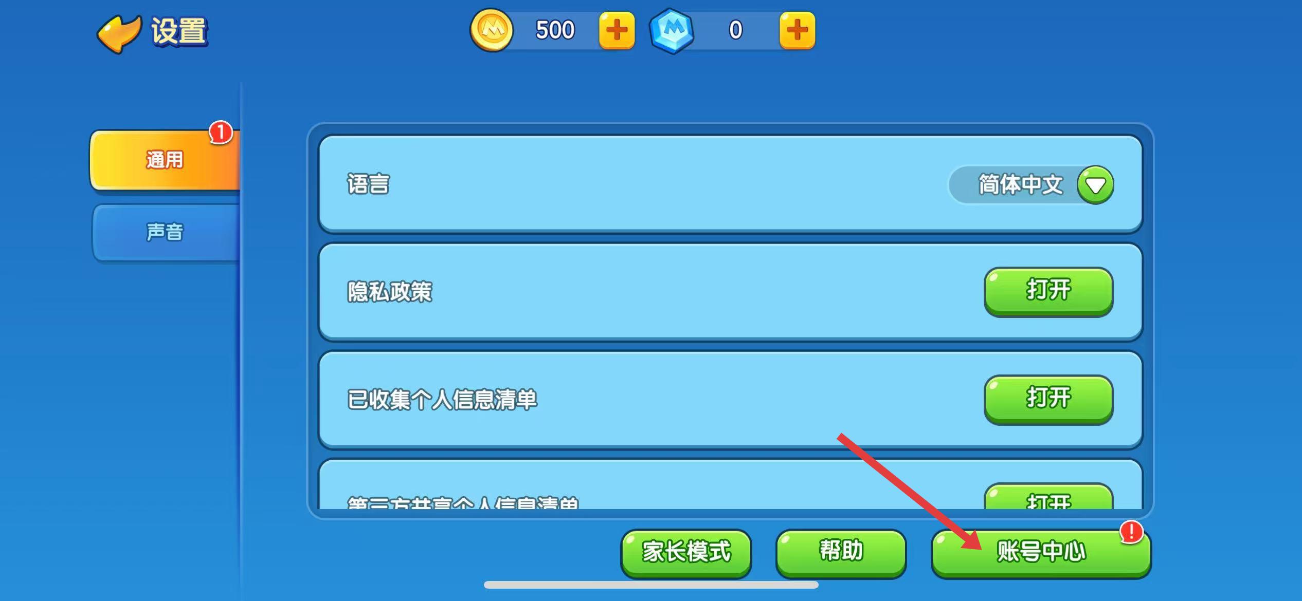 2、在设置界面,点击右下角的账号中心。