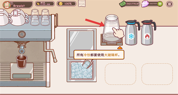 2、制作冷饮时,选择大玻璃杯,按提示操作,确保容器符合冷饮制作要求。