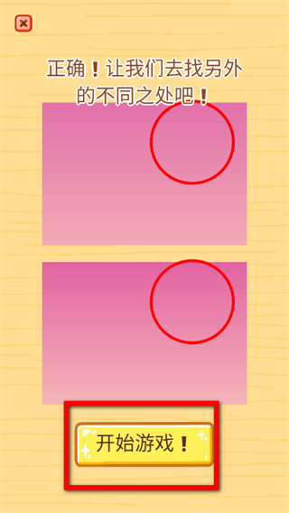 3、每找出一处不同,会有正确提示点击开始游戏,继续寻找剩余不同之处。