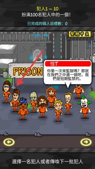 2、在犯人1-10个中,扮演100名犯人中的一个,可以根据提示进行挑选,选择后即可开启监狱生活。