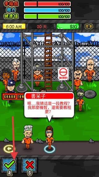 整个监狱关押着大约100名奇葩犯人,玩家如果想安全度过刑期,首先要面对的考验是其他犯人的欺辱