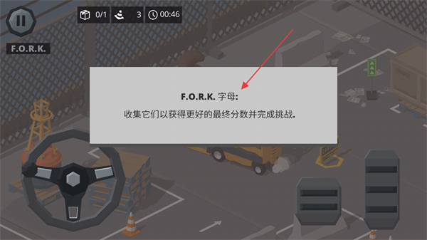 4、在场景中寻找F.O.R.K.字母,收集后提升分数,推进游戏进程。