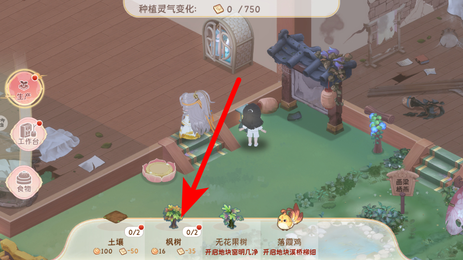 2、生产方面,可选择种植如枫树、无花果树等作物,还有落霞鸡等养殖对象,点击对应的选项,就能开展种植或养殖工作,为庄园发展积累资源。