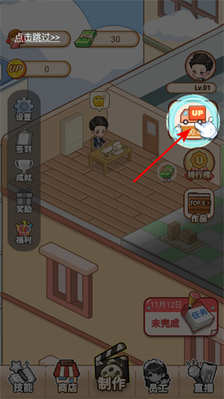 1、点击带有UP标识的升级区域,可提升制作能力或店铺等级,这是增强经营实力的关键操作,升级后能解锁更多创作资源业务机会。
