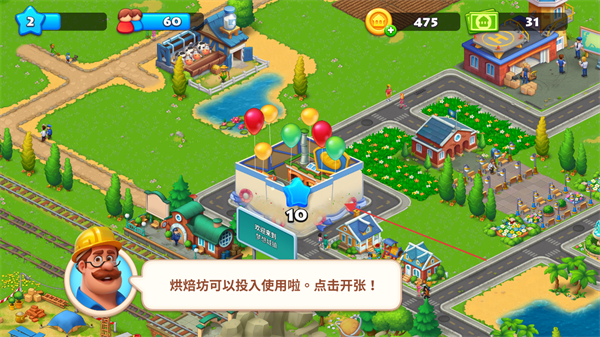 3、等待烘焙坊建造完成,期间可进行其他小镇建设操作。