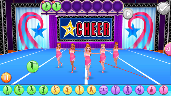 3、点击亮起的动作按钮,让啦啦队完成对应舞蹈动作,积累进度。