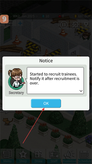 4、招募开始后,弹出通知框,点击OK确认,等待招募完成。