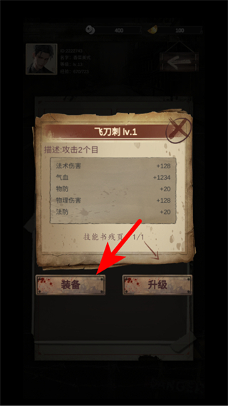4、获得技能书后,可点击装备按钮,装备技能以增强角色能力,助力后续战斗与探索。