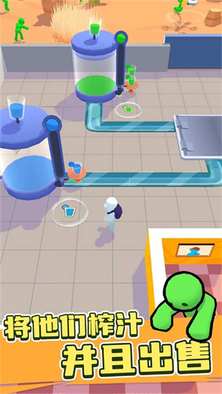 从小型榨汁摊逐步升级为大型工坊,解锁更多榨汁设备与僵尸品类,通过优化生产流程、提升果汁品质,实现顾客与收益的双重增长。