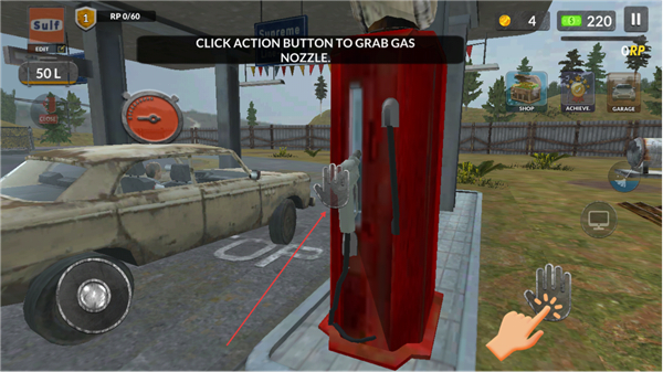 2、点击动作按钮,抓取加油机的油枪,为后续加油做准备。