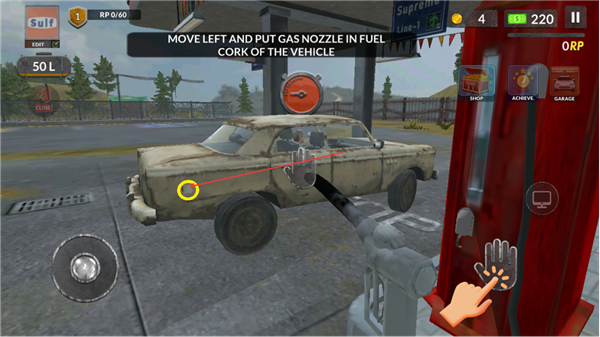 3、向左移动角色,将油枪插入车辆的油箱口,完成加油前的对接。