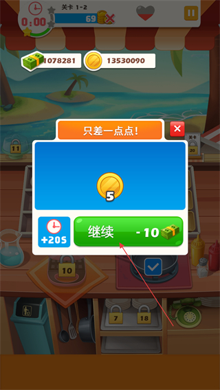 4、若时间不足,可选择消耗绿钞继续来延长时间,避免关卡失败。