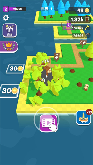 2、砍伐绿色树木,收集木材,积累资源数量。