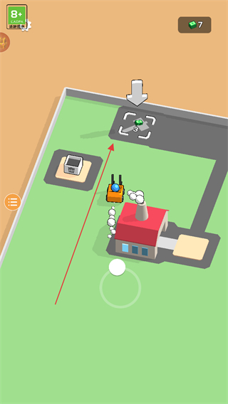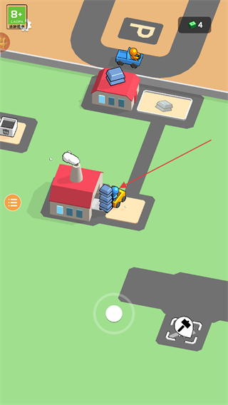 3、按照箭头指引,驾驶叉车前往下一个目标建筑红色厂房。