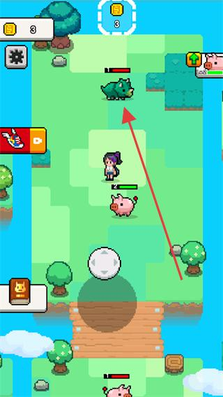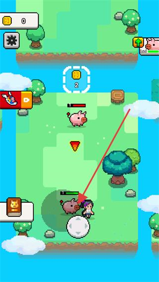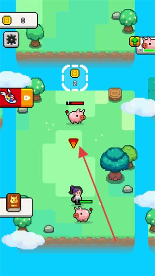1、操控角色靠近粉色小猪,击败它获取道具,同时观察上方的金币目标。