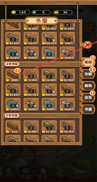 2、在进入书屋中,若需扩建书架,选择箭头指向的“简易书架”。