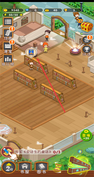 4、解锁书架后返回图书馆场景,点击响应顾客寻书需求。