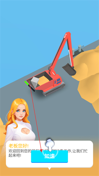 1、点击加速按钮,让挖掘机开始工作,挖掘沙土。