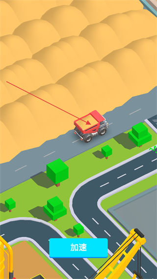 3、卡车运输沙土到加工区域,点击加速推进运输流程。