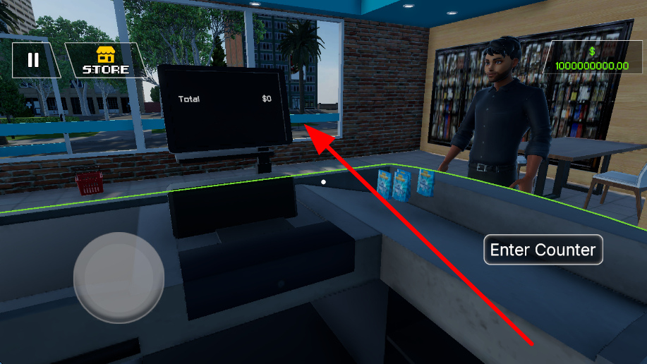 4、当有顾客选好卡牌来到收银台,走到收银台处点击EnterCounter按钮,此时收银机屏幕会显示消费总额,完成结账操作,收取费用。