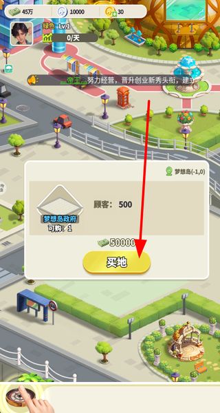 1、先消耗钞票买地,获得可建造区域,买地后解锁对应地块的使用权限,后续能在这块地上搭建店铺,逐步拓展经营区域。