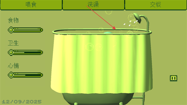 3、当女孩提出洗澡需求时,切换到洗澡界面,触发洗澡动画,提升卫生进度条。