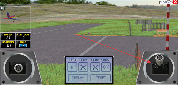 1、操控飞机在跑道上滑行,通过调整右侧控制杆控制油门,提升飞机速度,准备起飞。