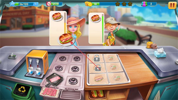 3、持续接收顾客订单、制作并交付食物,直到金币数量达成目标。